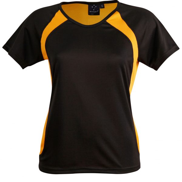 Description: Moisture management fabric. Ultra light mesh in contrast contoured side panels for ventilation. Excellent fit and comfort for athletes.